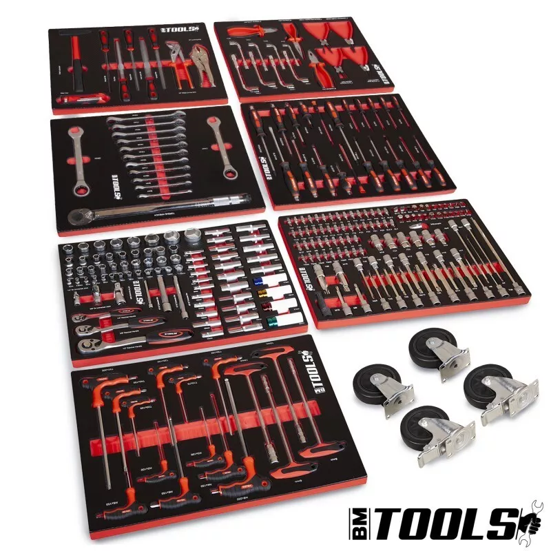 257 gereedschappen inbegrepen, geplaatst in modules van gespoten schuim met carbon‑look